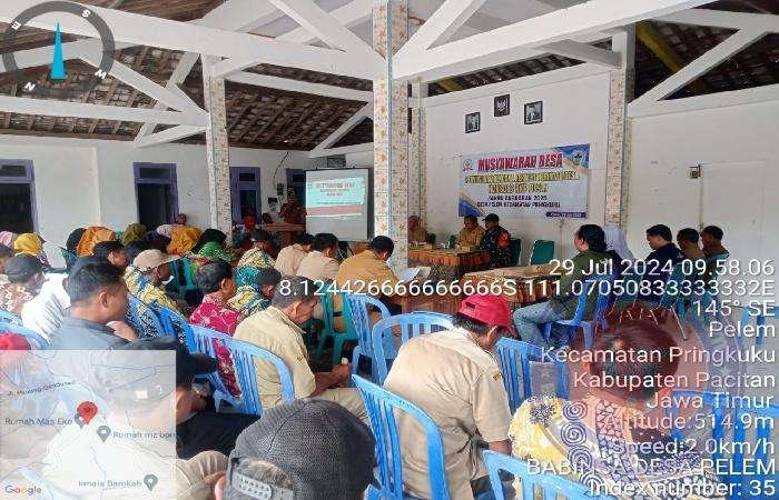 Kegiatan yang dilaksanakan di Balai Desa Pelem Kec. Pringkuku Kab. Pacitan dihadiri Forkopimca kecamatan Pringkuku ( Bpk Haryono ), Kades Pelem ( Bpk Jarno ), Babinsa Pelem ( Sertu Iwan Budi Santoso ), Babinkamtibmas Pelem ( Brigpol Felix SH ), Ketua BPD Budiyanto (Bpk Slamet ) Beserta anggota, Perangkat Desa Pelem, Perwakilan guru Paud Desa Pelem, Perwakilan Dari guru SDN Pelem, Pendamping Desa Pelem ( Bpk Lukman ), Kepala Dusun se Desa Pelem, Tokoh Masyarakat Desa Pelem, Ketua Penggerak PKK Desa Pelem.