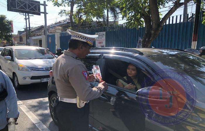 Seperti halnya pada operasi kali ini, tampak petugas dari Satlantas Polres Blitar Kota memberikan bunga dan kue Cokelat kepada pengendara yang tertib.