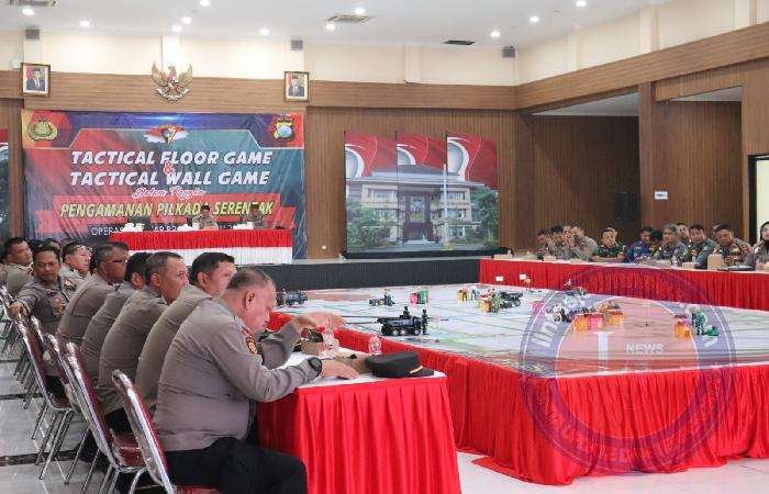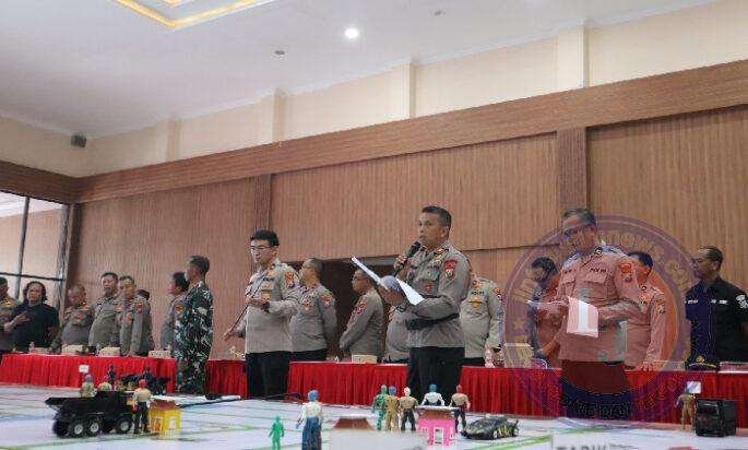 SIDOARJO lintasjatimnews – Polresta Sidoarjo bersama Polsek jajaran, Satbrimob Polda Jawa Timur, Kodim 0816 Sidoarjo, Satpol PP serta sejumlah instansi terkait menggelar Tactical Floor Game (TFG) dan Tactical Wall Game (TWG) pengamanan Pilkada serentak 2024 di Gedung Serbaguna Polresta Sidoarjo, Senin (29/7/2024).