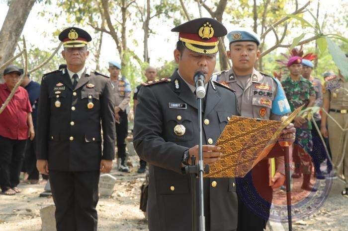 Kapolres Gresik AKBP Arief Kurniawan.,S.I.K. bertindak sebagai pemimpin upacara. Jalannya prosesi pemakaman dengan khidmat. Dengan langkah tegap, Kapolres dan seluruh peserta upacara memberikan penghormatan terakhir kepada almarhum yang telah mengabdikan hidupnya untuk institusi Kepolisian.