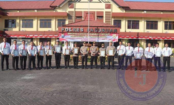 Kapolres Pasuruan mengucapkan selamat kepada Personil yang naik pangkat setingkat lebih tinggi dan dia berharap agar kenaikan pangkat Pengabdian tersebut membawa kebahagiaan dan kebanggaan dalam keluarga serta meningkatkan semangat bekerja menjelang masa purna tugas.