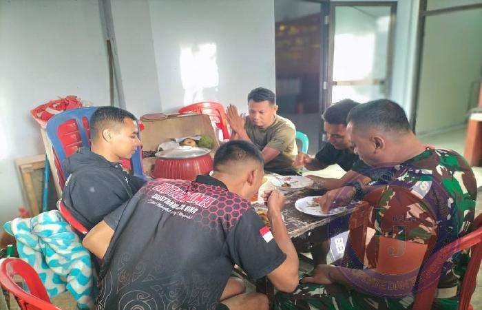 “ Alhamdulillah untuk menu yang disediakan dari pihak yang kami tempati di rumah ini rasanya sangat enak dan tidak kalah dengan masakan yang ada di kota kota, “ ujar Serda Hendro Wahyudi yang saat itu kebetulan sedang menikmati hidangan makan sore bersama Tim Media Center serta anggota Satgas TMMD yang lainnya.