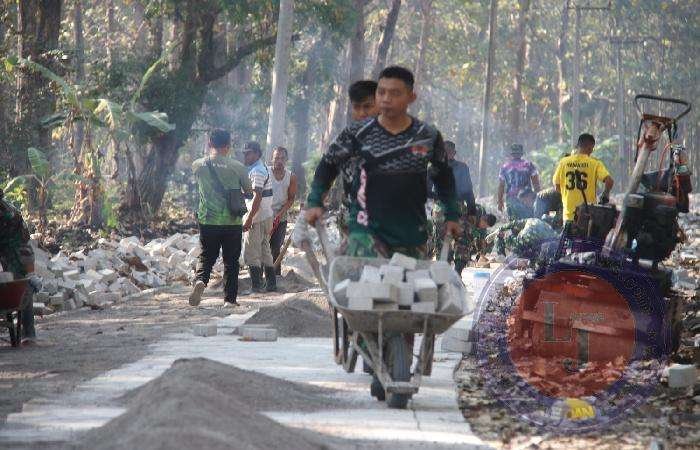 Serma Basori selaku Babinsa desa setempat mengatakan, salah satu tantangan saat membangun jalan di Desa Bangunrejo Lor adalah melangsir material, sehingga perlunya stamina yang prima.