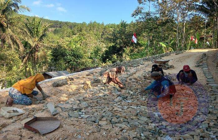 Ditanya mengapa tidak istirahat saja dulu, dia menjawab sambil tersenyum bahwa itu diakukan agar pembangunan di desanya cepat rampung dan bisa dirasakan hasilnya. “ Kan istirahatnya disini juga Pak, tidak jauh dari talud. Kebetulan ini juga ada pembangunan makadam jalan jadi sambil istirahat bisa menata batu, “ ujarnya sambil tangannya aktif menata batu di lokasi pembangunan makadam jalan yang bersebelahan dengan pembangunan talud tersebut.