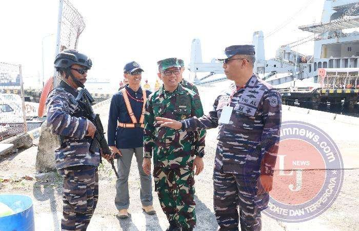 BANYUWANGI lintasjatimnews – Dalam rangka mendukung suksesnya kegiatan Latgabma Super Garuda Shield 2024 diwilayah Kabupaten Banyuwangi dan Situbondo, Komandan Pangkalan TNI AL (Danlanal) Banyuwangi Letkol Laut (P) Hafidz, M.Tr.Opsla., melaksanakan Inspeksi terhadap Pengamanan dan Proses Bongkar Alutsista US Army di Dermaga Tanjung Wangi Jl. Raya Situbondo Ketapang Banyuwangi. (13/08/2024).