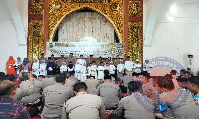 PASURUAN lintasjatimnews – Dalam rangka pembinaan Mental dan Spiritual untuk meningkatkan ketaqwaan dan iman kepada Allah SWT, Polres Pasuruan melaksanakan kegiatan rutin Pembinaan Mental dan Rohani (Binrohtal) yang diikuti oleh seluruh Personil Polres Pasuruan, bertempat di Masjid Rofiqul Ummah Polres Pasuruan, Kamis (15/8/2024).
