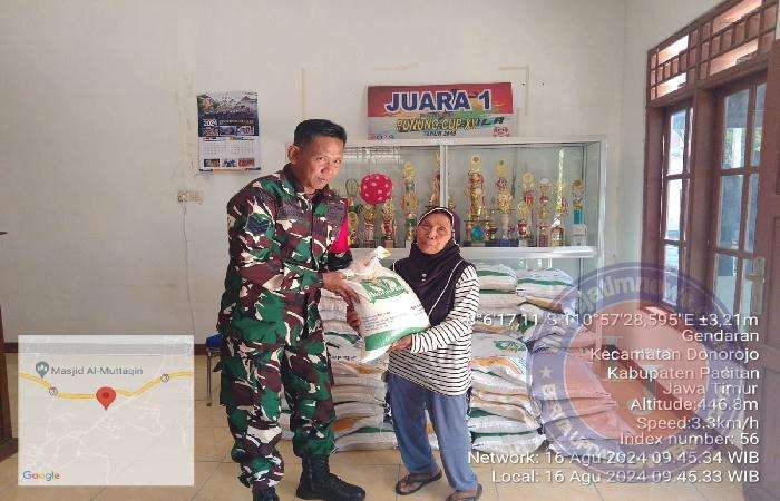 Pastikan Tepat Sasaran, Babinsa Koramil 0801/11 Donorojo Lakukan Pendampingan Bantuan Beras