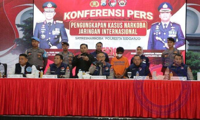 SIDOARJO lintasjatimnews – Komitmen perangi Narkoba oleh jajaran Polda Jawa Timur kembali dibuktikan dengan berhasil mengungkap dan menangkap tersangka pengedar Narkoba jaringan Internasional.