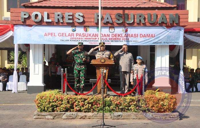 Kegiatan diawali dengan pelaksanaan Apel Gelar Pasukan Operasi Mantap Praja 2024 yang dipimpin langsung oleh Kapolres Pasuruan AKBP Teddy Chandra, S.I.K., M.Si. Apel tersebut dilaksanakan guna memastikan kesiapan seluruh Personel yang terlibat dalam rangka pengamanan Pilkada di wilayah Kabupaten Pasuruan.