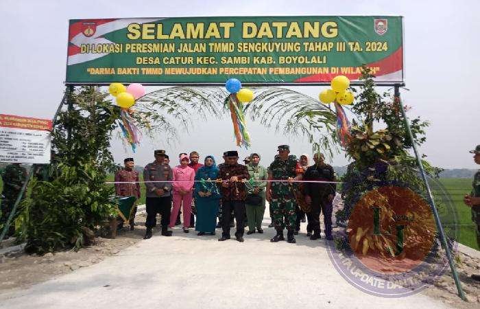 BOYOLALI lintasjatimnews – Setelah hampir sebulan bekerja keras , program TNI Manunggal Membangun Desa (TMMD) Sengkuyung Tahap III Tahun 2024 Kodim 0724/Boyolali yang bertempat di Desa Catur Kecamatan Sambi Kabupaten Boyolali secara resmi ditutup. Upacara penutupan di Lapangan Desa Catur, Kamis (22/08/2024).