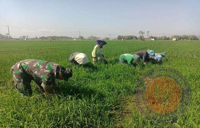 NGAWI lintasjatimnews – Pembinaan ketahanan pangan di kewilayahan terus ditingkatkan oleh Aparat TNI di wilayah. Seperti yang dilakukan Serda Gaip santoso Babinsa Koramil 0805/06 Kwadungan Kodim 0805/Ngawi dengan turun langsung ke sawah mendampingi kegiatan petani di Desa binaan dalam kegiatan matun atau penyiangan rumput liar yang berada di Desa Karangsono Kec. Kwadungan, Senin (26/8/2024).