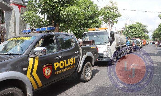 Sejumlah kendaraan pengangkut air bersih dari BPBD, Pemadam Kebakaran, hingga Water Canon diberangkatkan dari Polres Tulungagung oleh Kapolres Tulungagung AKBP Muhammad Taat Resdi di dampingi dari Kodim 0807 Tulungagung, Pemerintah Daerah, BPBD dan PJU Polres.