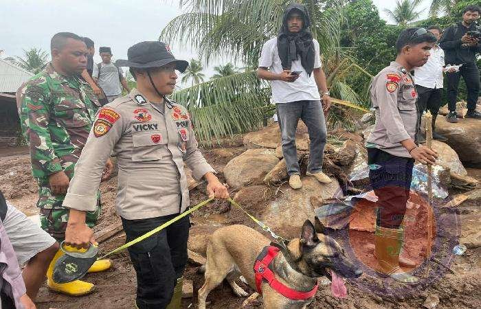 TERNATE lintasjatimnews – Polda Maluku Utara mengerahkan 102 personel dari Direktorat Samapta untuk melakukan kegiatan kemanusiaan membantu masyarakat yang menjadi korban banjir bandang dan tanah longsor di Kelurahan Rua, Kota Ternate. Selain itu juga menurunkan anjing pelacak dari Tim K9 untuk mencari korban yang masih hilang.