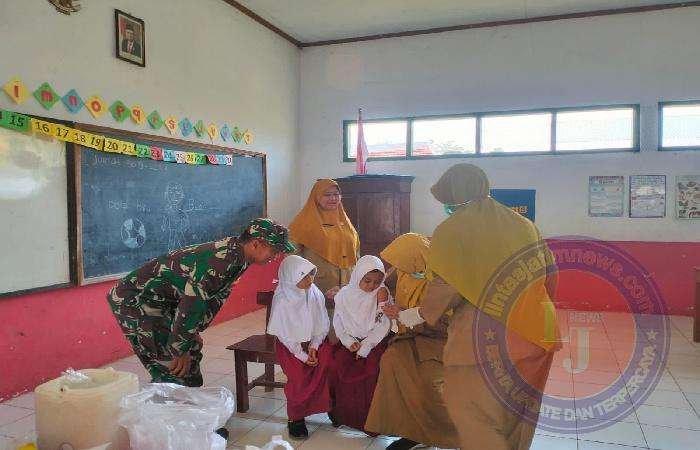 NGAWI lintasjatimnews – Babinsa Koramil 0805/10 Sine Sertu Ramelan dampingi pelaksanaan BIAS (Bulan Imunisasi Anak Sekolah) di SD Negeri 1 Tulakan , Kecamatan Sine, Kabupaten Ngawi, Senin (02/09/2024).