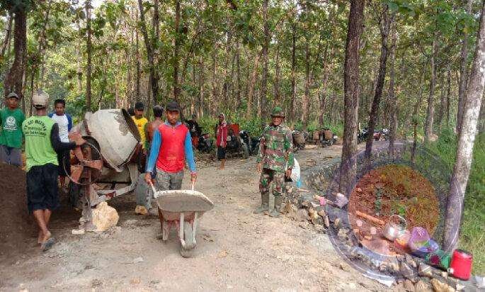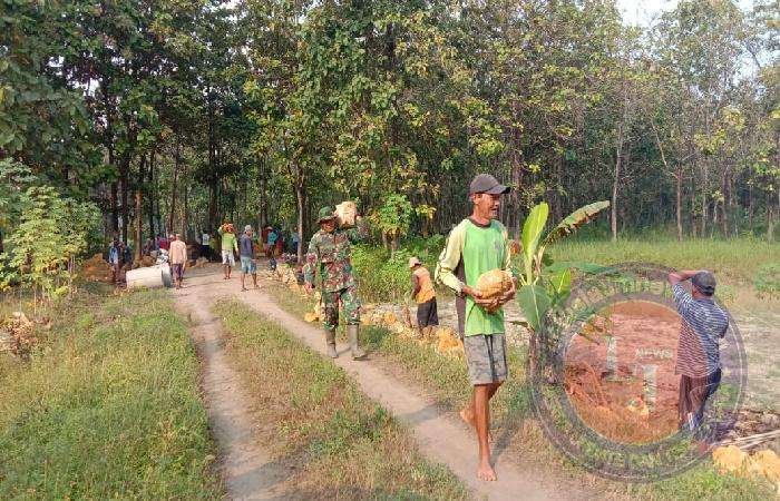 Percepat Program pembangunan Desa, Babinsa Mantingan Bersama Masyarakat Kerja Bakti Bangun Talud Jalan