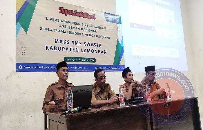 LAMONGAN lintasjatimnews – MKKS (Musyawarah Kerja Kepala Sekolah) SMP Swasta Kabupaten Lamongan mengadakan Sosialisasi Asesmen Nasional (AN) dan Platform Merdeka Mengajar (PMM). Acara bertempat di SMP Aplikatif Assunniyyah Sunan Drajat Lamongan, Selasa (3/8/2024).