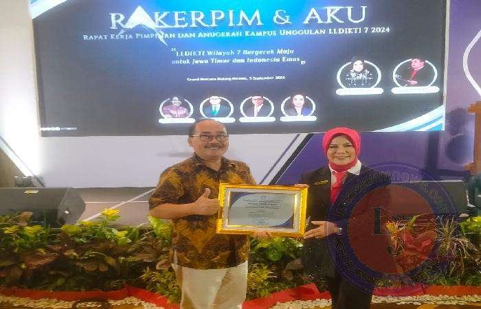 BANYUWANGI lintasjatimnews – Universitas PGRI Banyuwangi Dalam kegiatan malam puncak dies natalis ke-43 mendapatkan penghargaan bertajuk ‘Anugerah Kampus Unggulan’ dari Lembaga Layanan Pendidikan Tinggi (LLDikti) Wilayah VII Jawa Timur. Penghargaan ini diberikan di sela-sela Rapat Kerja Pimpinan Perguruan Tinggi LLDikti Wilayah VII di Hotel Grand Mercure, Kota Malang, Jawa Timur, Kamis 5 September 2024. (5/7/24).