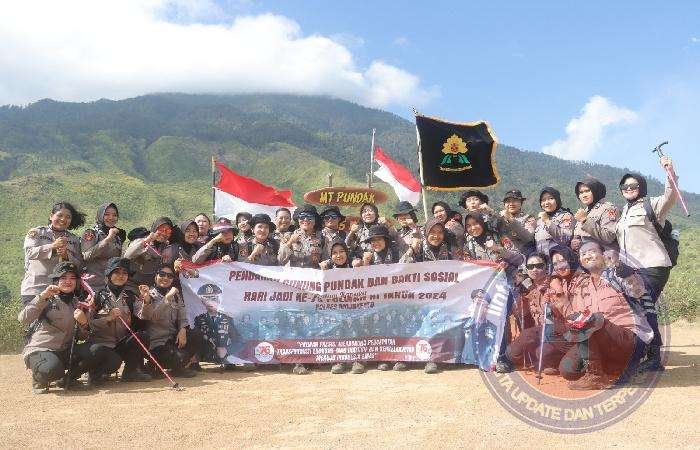 MOJOKERTO lintasjatimnews – Memperingati Hari Jadi ke-76 Polisi Wanita Republik Indonesia (Polwan RI), Polwan Polres Mojokerto melaksanakan kegiatan pendakian di Gunung Pundak, Desa Claket, Kecamatan Pacet, Kabupaten Mojokerto, Sabtu (7/9/2024).