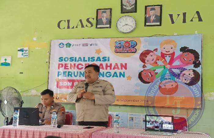 Di SDN Bulang, Prambon, Sidoarjo, Selasa (10/9/2024), anggota Satbinmas Polresta Sidoarjo, Polsek Prambon bersama guru mengedukasi pelajar bahaya tindak perundungan (bullying), serta mengajak berkomitmen pencegahan perundungan.