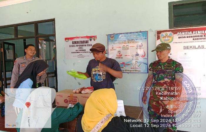 Sertu Arief Nur Hidayat Babinsa Koramil 0801/11 Donorojo Kodim 0801/Pacitan untuk menurunkan angka Stunting di wilayah binaannya, memberikan pendampingan pendistribusian bantuan pangan pemerintah berupa telur ayam 10 butir dan ayam 1 ekor, kepada keluarga resiko stunting (KRS) di Desa Donorojo Kec. Donorojo Kabupaten Pacitan.