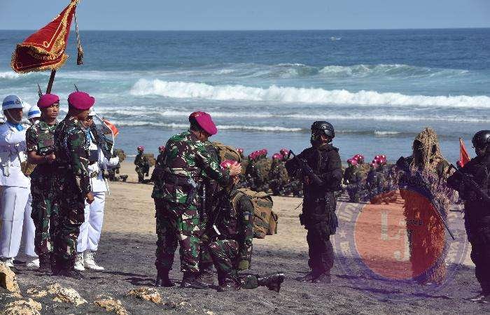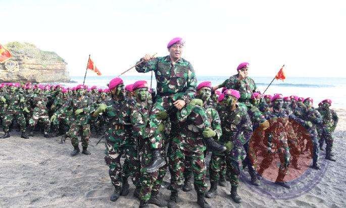 Dankodiklatal Saksikan Ratusan Prajurit Muda Didikan Kodikmar Kodiklatal Resmi Kenakan Baret Ungu Kebanggan Marinir