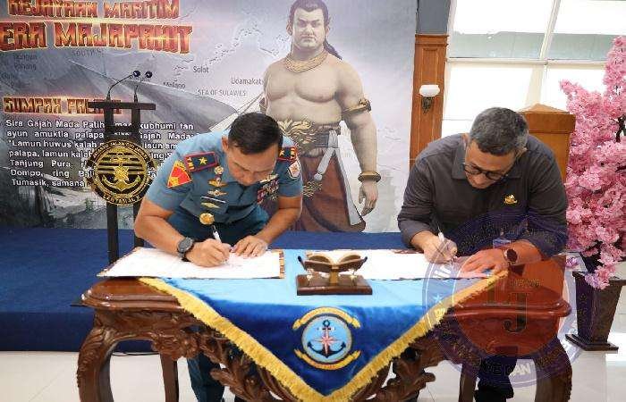 SURABAYA lintasjatimbews – Komandan Pangkalan Utama TNI AL (Danlantamal) V Brigjen TNI (Mar) Joni Sulistiawan, S.H., M.Han menandatangani Berita Acara Serah Terima Alih Status Penggunaan BMN Gedung Serbaguna Graha Samudera Bumimoro (GSB) dari Kementrian Perhubungan kepada TNI Angkatan Laut yang dilaksanakan di Loby atas Mako Lantamal V, Perak, Surabaya. Kamis (19/09/2024)