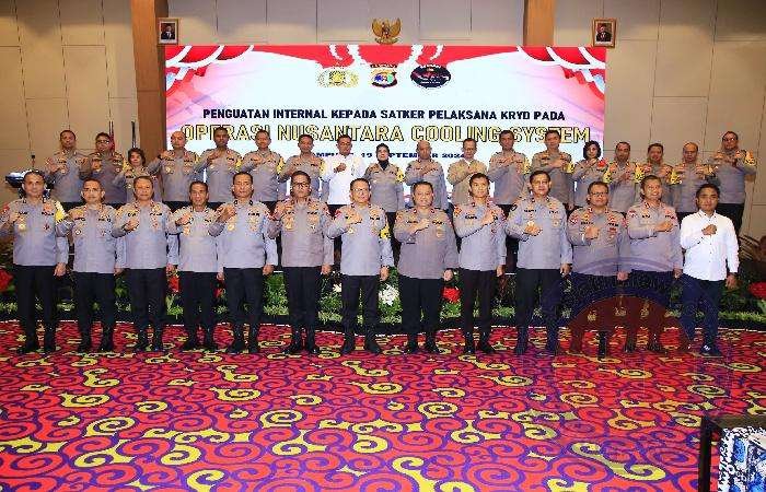 Sebanyak 750 personel mengikuti kegiatan penguatan kepada satker pelaksana kegiatan rutin yang ditingkatkan (KRYD) terkait Nusantara Cooling System di Ballroom Novotel, Bandar Lampung, Kamis (19/9/2024). Turut hadir Kapolda Lampung Irjen Pol Helmy Santika dan seluruh pejabat Utama.