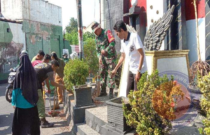 Peringati Word Clean Up Day, Babinsa Gandekan Bersama Staf Kelurahan Bersihkan Lingkungan