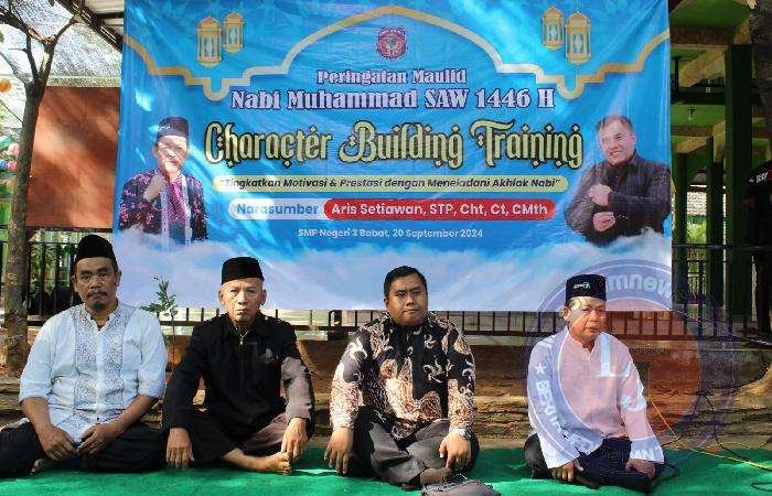 LAMONGAN lintasjatimnews – Peringatan Maulid Nabi Muhammad SAW di SMP Negeri 3 Babat, datangkan motivator nasional, Aris Setiawan, S.TP, Cht., Ct. CMth. Kegiatan ini digelar di halaman sekolah setempat, Jumat (20/09/2024).