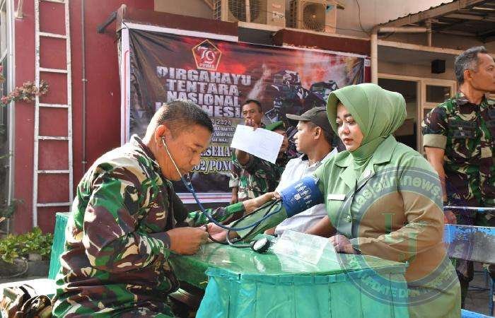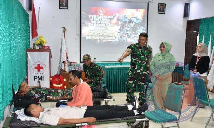 PONOROGO lintasjatimnews – Memperingati Hari Ulang Tahun (HUT) ke 79 Tentara Nasional Indonesia (TNI) tahun 2024, Kodim 0802/Ponorogo tadi pagi menggelar kegiatan Bakti Sosial donor darah bertempat di Kantor Palang Merah Indonesia Kabupaten Ponorogo, Sabtu (21/19/2024).