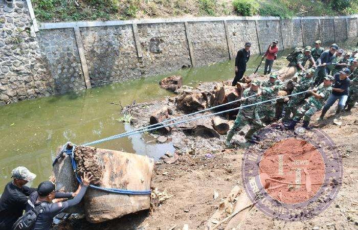 Dandim 0802/Ponorogo dengan penuh semangat ikut menarik potongan kayu besar yang ada di dasar sungai bersama para peserta baik anggota Kodim 0802/Ponorogo maupun masyarakat umum.