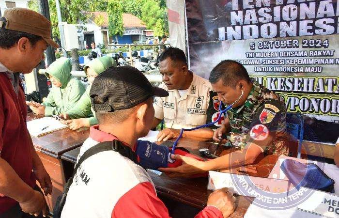 PONOROGO lintasjatimnews – Kodim 0802/Ponorogo bekerjasama dengan Poskes 05.09.05 Ponorogo menggelar kegiatan Bakti Kesehatan Pengobatan Masal bertempat di jalan Ir. Juanda Kelurahan Tonatan Kecamatan / Kabupaten Ponorogo, Minggu (22/09/2024).