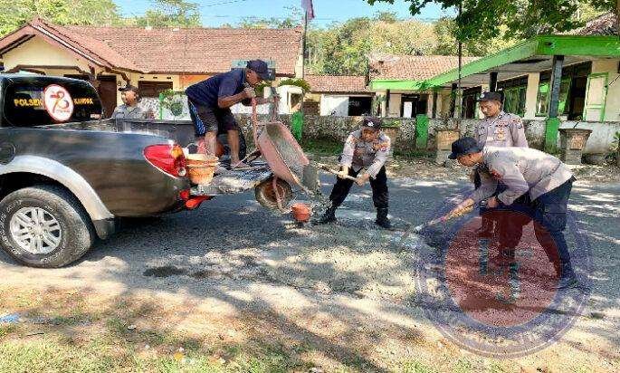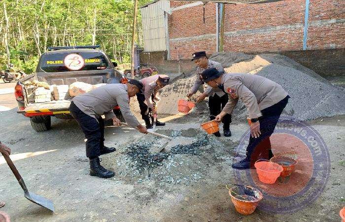 Dengan memanfaatkan sumberdaya yang ada, Polsek Kampak berupaya melakukan langkah-langkah pencegahan, salah satunya dengan menambal jalan berlubang.