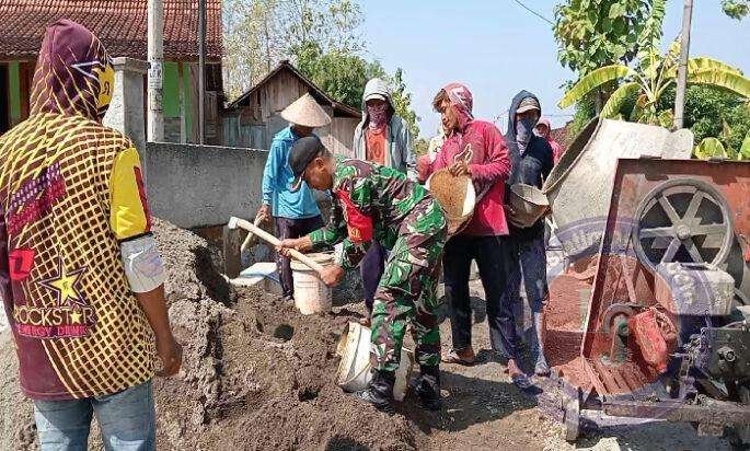 Babinsa Koramil 0805/15 Karanganyar, Kodim Ngawi Sertu Misnan melaksanakan Karya Bakti (Karbak) di Desa Gembol Kecamatan Karanganyar, Senin (23/9/2024).