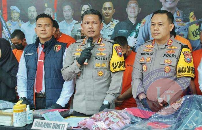 “Setelah dilakukan penyelidikan, tim gabungan Polres jajaran berhasil melacak keberadaan para pelaku yang tengah bersembunyi di sebuah rumah di Kecamatan Dampit.” tambah Kombes Budi Hermanto.