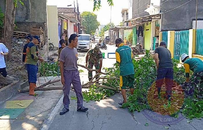Gandeng Warga dan Perangkat Kelurahan, Babinsa Joyotakan Bersihkan Rumput Liar dan Pemangkasan Pohon