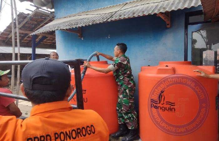 Tidak ketinggalan dalam pengedropan air bersih tersebut juga tidak lepas dari pengawalan dan pendampingan para Bintara Pembina Desa (Babinsa) Kodim 0802/Ponorogo yang di wilayah binaannya mengalami kekeringan dan sulit memperoleh kebutuhan air bersih.