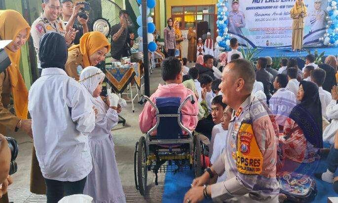 “Ini bagian dari rasa kepedulian Polres Bondowoso terhadap sesama termasuk anak – anak yang berkebutuhan khusus di SDLB ini,”kata AKBP Lintar Mahardhono di SDLB Bondowoso.
