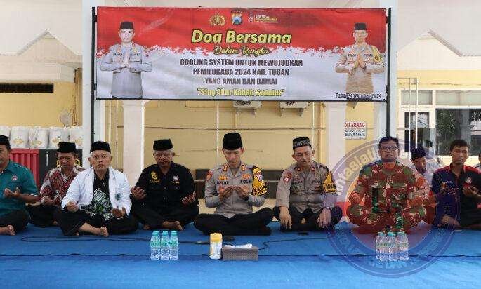 TUBAN lintasjatimnews – Dalam rangka Cooling system untuk mewujudkan Pemilukada kabupaten Tuban yang aman dan damai, Polres Tuban menggelar kegiatan doa bersama elemen Perguruan Pencak Silat wilayah Kabupaten Tuban.