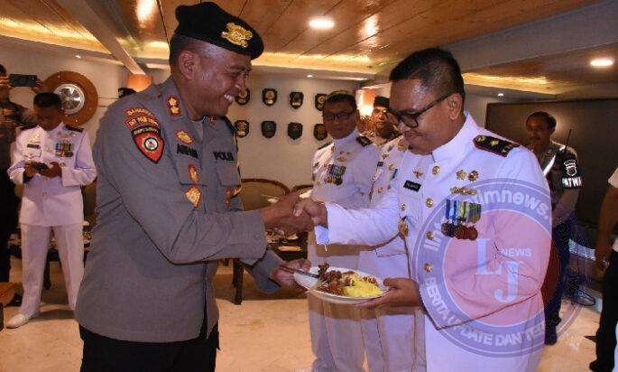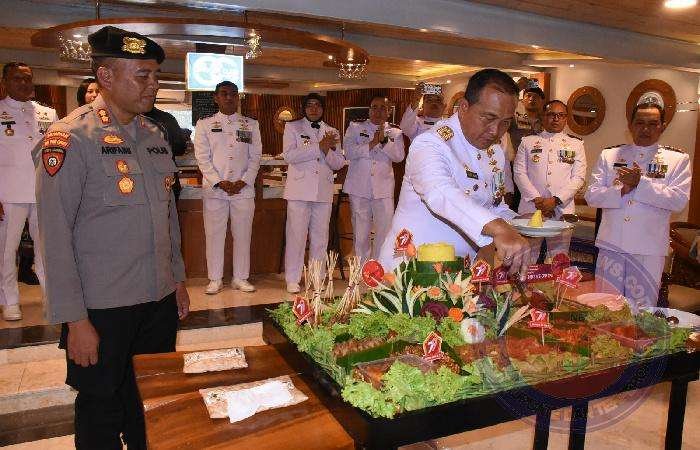 Rombongan Personel Polrestabes Surabaya yang dipimpin AKBP Wachid Arifaini, dengan didampingi Kompol Budi dan 15 personel dari Polrestabes Surabaya memberikan surprise dengan membawa nasi tumpeng sebagai simbol ucapan selamat dan penghormatan kepada para Prajurit Kodiklatal yang merayakan HUT Ke-79 TNI.