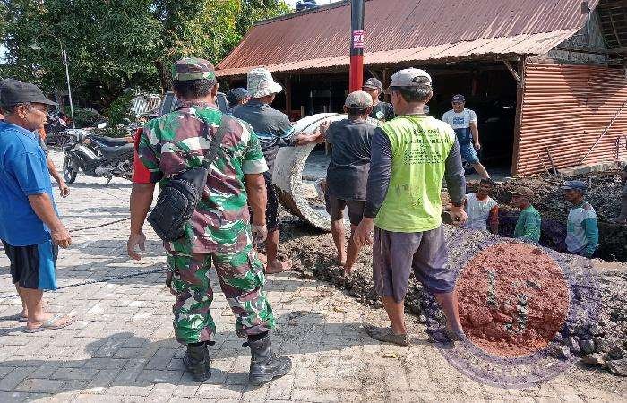 Perlancar Aliran Air, Babinsa Poskoramil Gerih Bantu Warga Pasang Gorong-Gorong