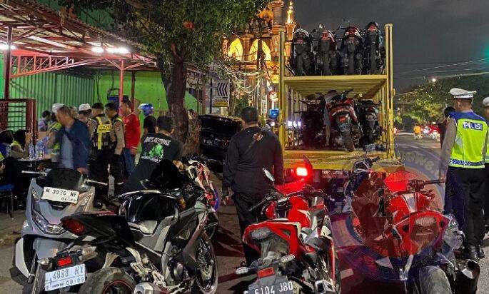 Kejar-kejaran dengan anggota kepolisian, 47 motor yang diduga digunakan balapan liar diamankan dari Jalan Kedung Cowek, Minggu (06/10/2024) dini hari.