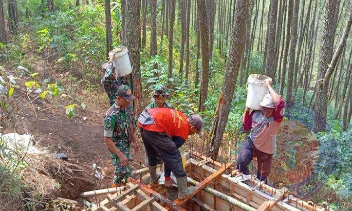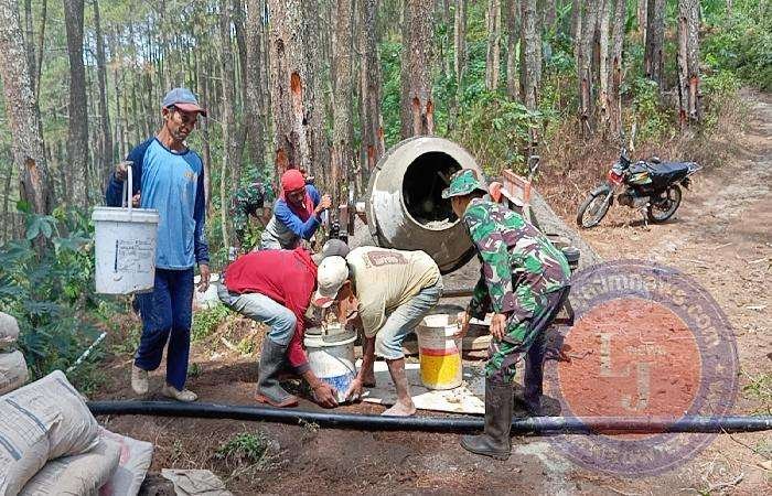 Sukseskan Program Pipanisasi, Babinsa Kodim 0802/Ponorogo Ikut Bangun Bak Penampungan Air