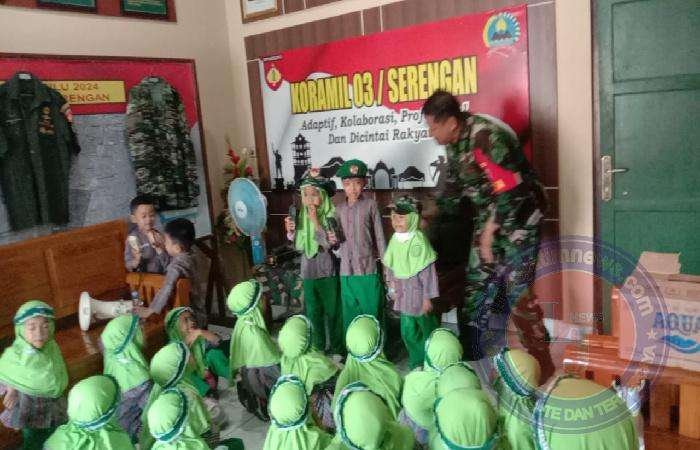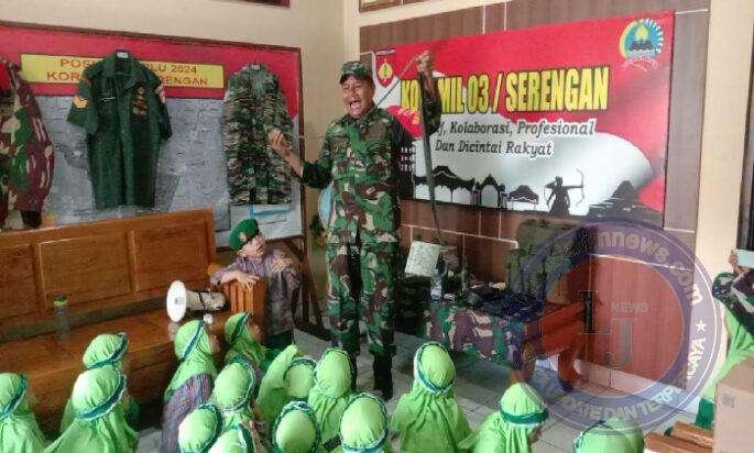 Bati Tuud Koramil 03/Serengan Pelda Sugianto dan Babinsa Serka Aris dan Serka Sarmin menyambut kedatangan anak didik Kelompok Bermain-Radhatul Athfal (KB-RA) Al-Islam 1 Jamsaren Serengan dengan memberi sambutan yang baik. Seperti diketahui inti dari kunjungan tersebut agar anak didik mengenal kepada lingkungan TNI khususnya di Koramil 03/Serengan dan memperkenalkan sedini mungkin kepada anak.