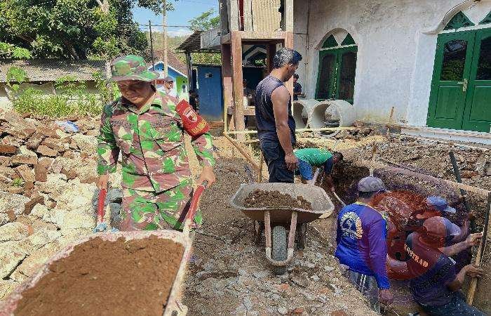 Wujud Peduli, Babinsa Ramil 0801/03 Arjosari Gotong-royong Ronovasi Tempat Ibadah
