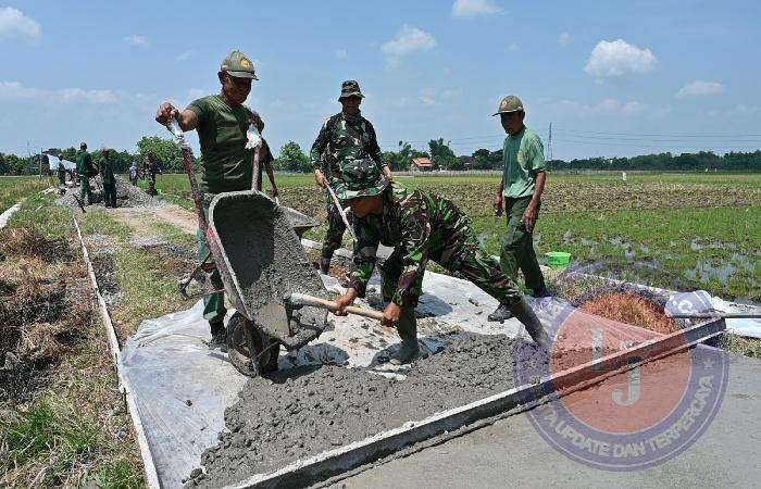 SUKOHARJO lintasjatimnews – Progres Betonisasi Jalan yang menghubungkan Dukuh Gatel – Dukuh Jetis desa Tambakboyo, dengan volume pekerjaan Panjang 300 meter x Lebar 3 meter x tinggi 0,1 meter, saat ini terus dikerjakan oleh Satgas TMMD Sengkuyung Tahap IV Kodim 0726/Sukoharjo bekerjasama dengan warga masyarakat secara bergotong royong.(15/20/24).