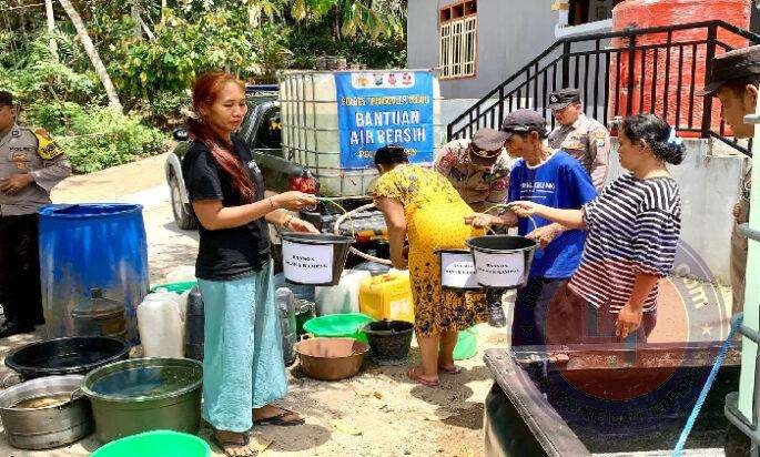 Sembari menggelar Patroli Genthong yakni sebuah program berbasis kemanusiaan dengan menyalurkan air bersih, petugas nampak juga membagikan ember plastik kepada sejumlah warga.