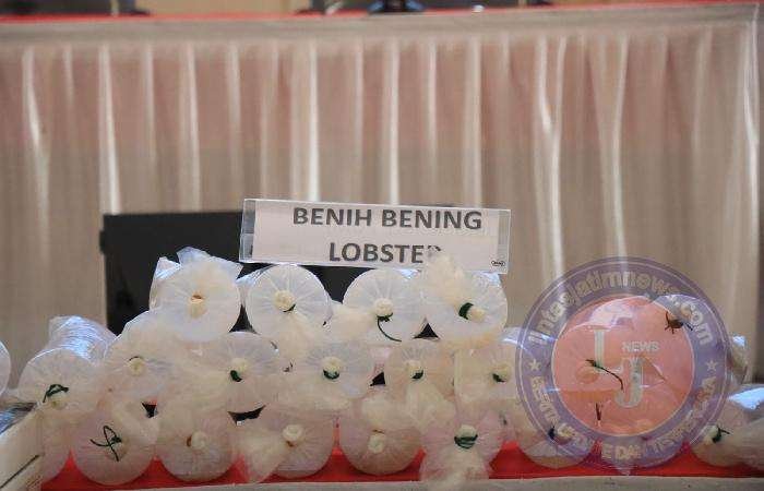 Dari lokasi ditemukan 149.400 ekor benih lobster yang terdiri dari 880 ekor jenis mutiara dan 148.520 ekor jenis pasir, yang dikemas dalam 747 kantong.