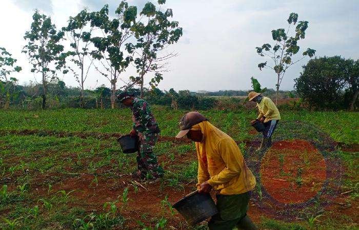 Tingkatkan Hasil Pertanian, Babinsa Koramil 0805/12 Mantingan Bantu Pemupukan Petani Jagung