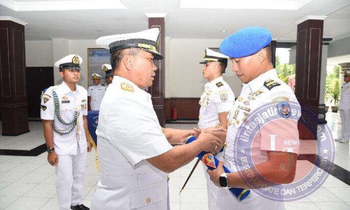 SURABAYA lintasjatimnews – Sebanyak 23 Perwira TNI Angkatan Laut (TNI AL) resmi menyelesaikan Pendidikan Spesialisasi Perwira (Dikspespa) Suplai dan Polisi Militer TA. 2024. Upacara penutupan pendidikan yang dipimpin langsung oleh Komandan Kodikdukum (Dankodikdukum) Kodiklatal Laksma TNI Dr. Taufik Arief, berlangsung di Lobby Mako Kodikdukum Kodiklatal, Bumimoro Surabaya. Jumat (18/10/2024),